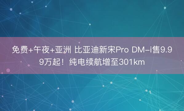 免费+午夜+亚洲 比亚迪新宋Pro DM-i售9.99万起!纯电续航增至301km